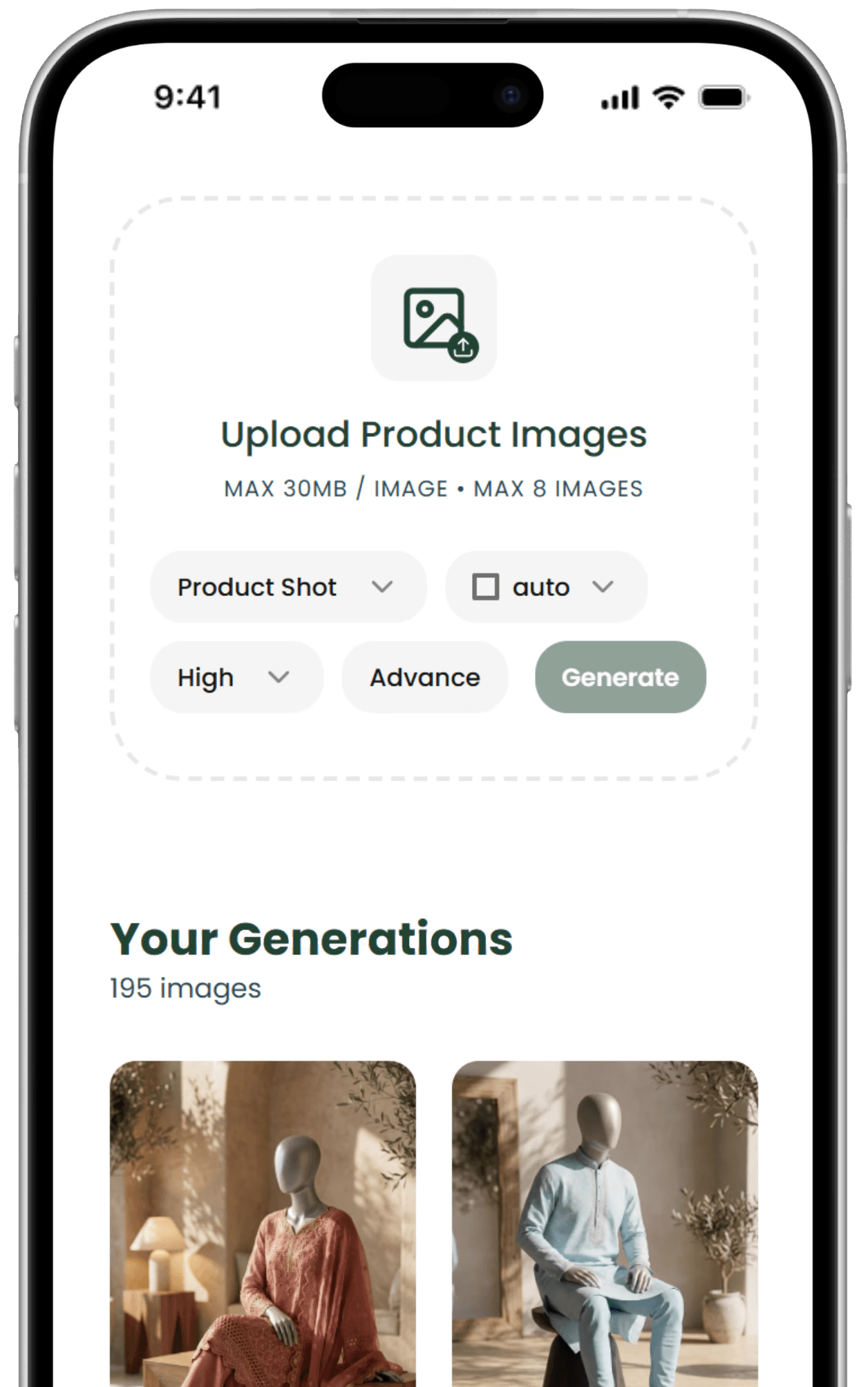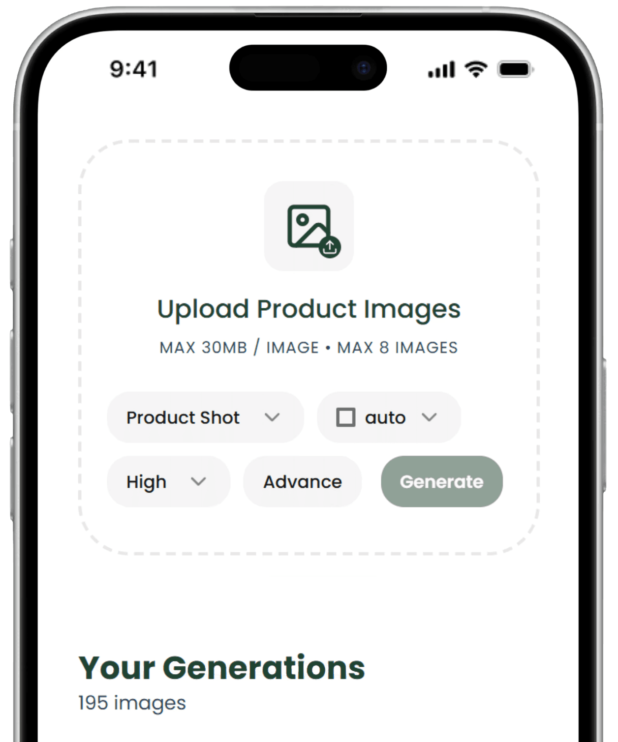 Upload your product images and get production-ready visuals in minutes. No studio, no photographer!